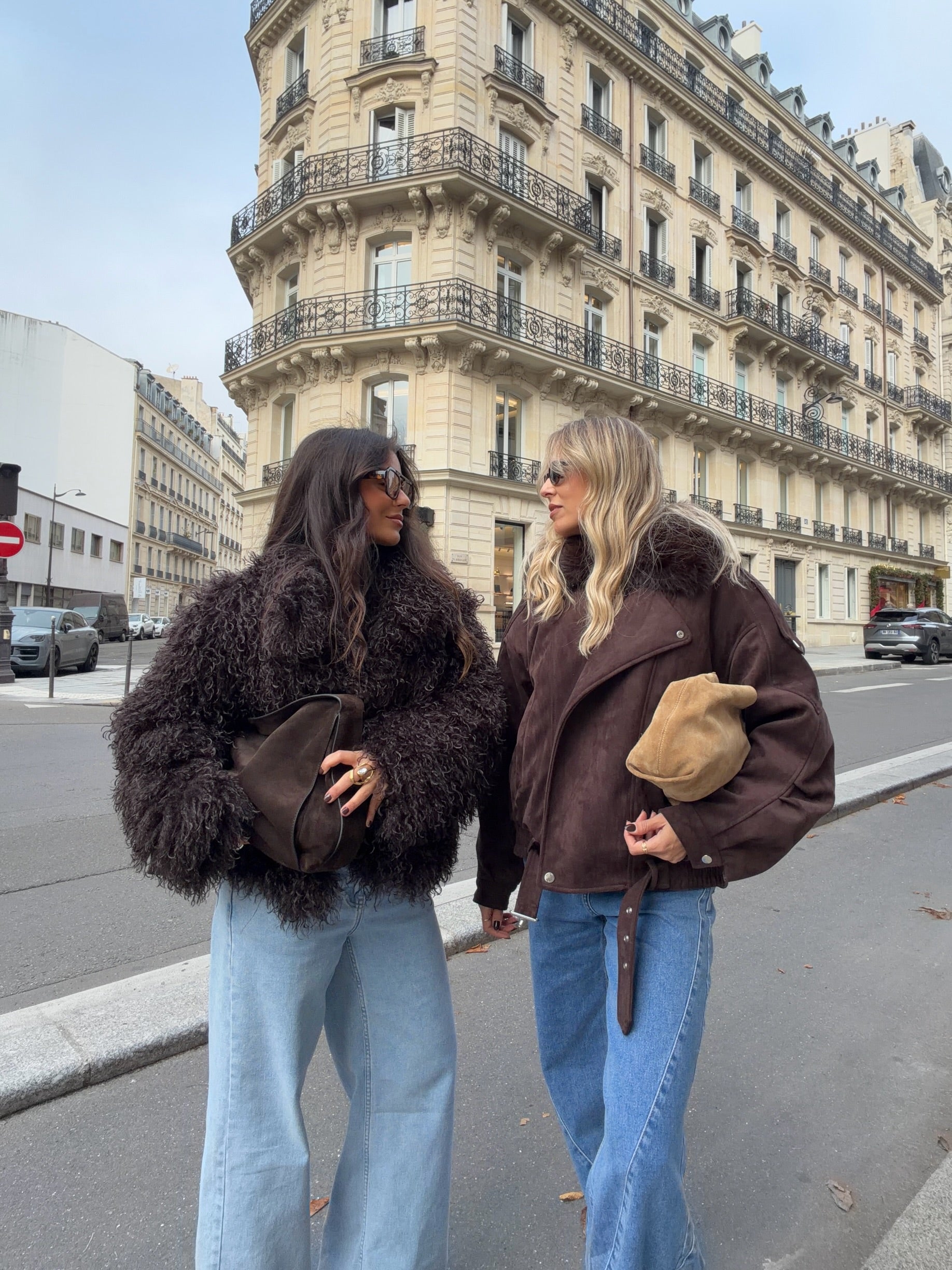 Vendbar jakke - Krøllete pels og semsket skinneffekt
